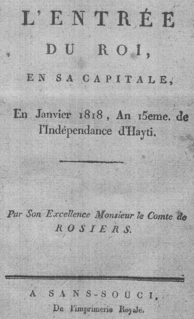 Au palais Sans-Souci du roi Henry, c’était tous les soirs représentations de théâtre, d’opéras et de symphonies. C’est dans ce contexte que Juste Chanlatte (1766-1828), ex-élève du collège Louis-le-Grand à Paris, journaliste, écrivain et homme politique, se révéla le plus fervent animateur de ce culte des splendeurs scéniques du Royaume du Nord. Ennobli sous le nom de Comte de Rosiers, il produisit au moins deux pièces présentées comme « opéra vaudeville » ou « opéra » tout court, lesquelles, en réalité, répondent plutôt au modèle de la comédie mêlée d’ariettes : L’Entrée du Roi en sa capitale, probablement représentée le 1er janvier 1818 à Sans-Souci, et La Partie de chasse du roi, « représentée devant leurs majestés, au Cap-Henry [nom du Cap-Haïtien sous la royauté], le 1er janvier 1820 ».